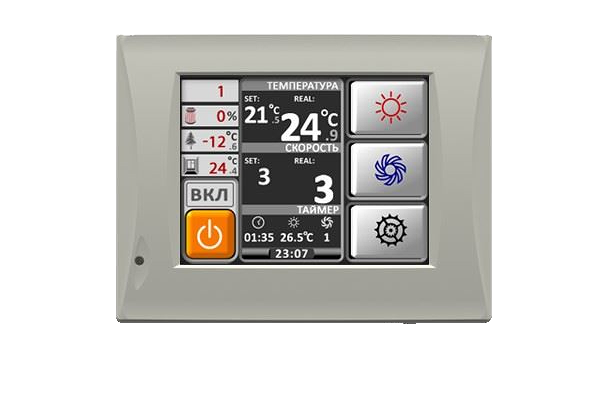 - Контроль текущих параметров воздуха (температура и влажность уличного воздуха, температура приточного, вытяжного и выбрасываемого воздуха